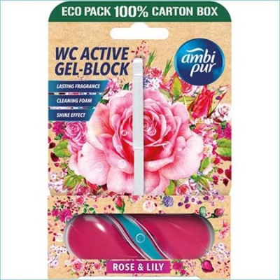 Az Ambi Pur WC tisztító blokk hatékony WC-tisztítószer. Eltávolítja a szennyeződéseket és megakadályozza a vízkő és lerakódások kialakulását. A kellemes illat sokáig frissen tartja a WC-t, a hatékony formula pedig minden öblítéssel higiénikus tisztaságot biztosít.